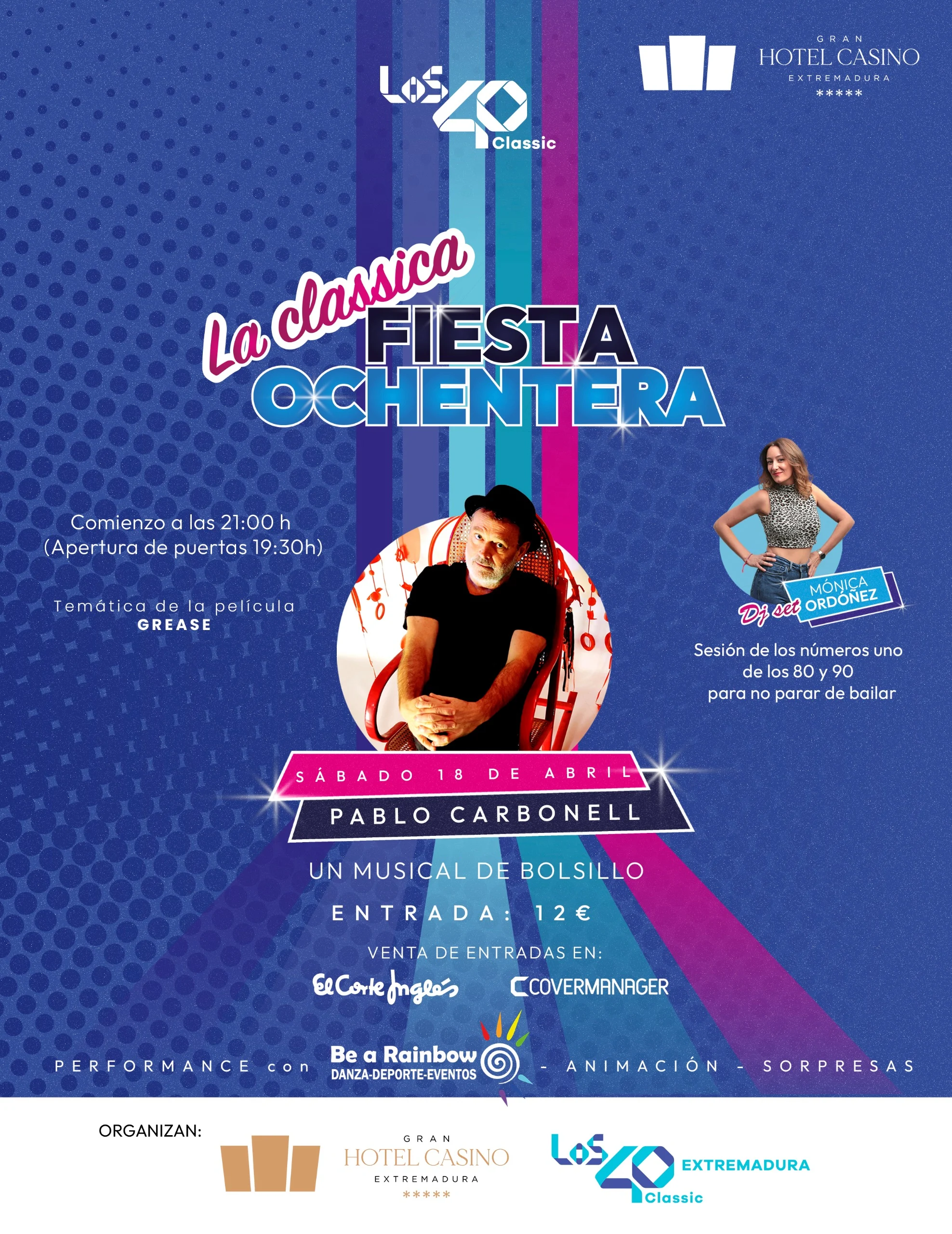 Con la participación de Pablo Carbonell y DJ set de Mónica Ordóñez, prepárate para cantar, bailar y vivir una experiencia única.